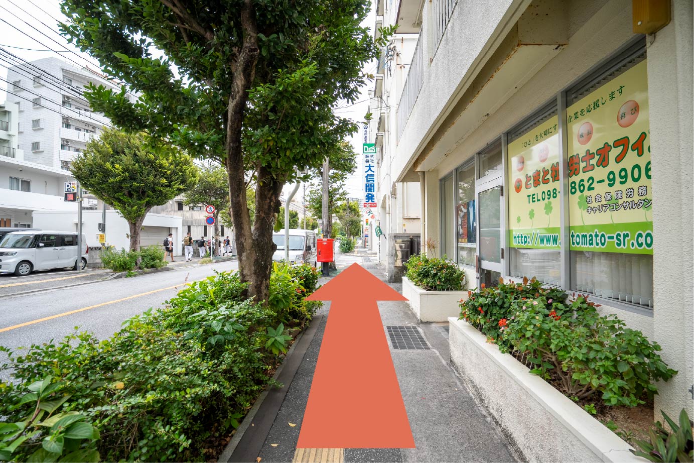 とまと社労士オフィスを右手に、なかよし通りを直進