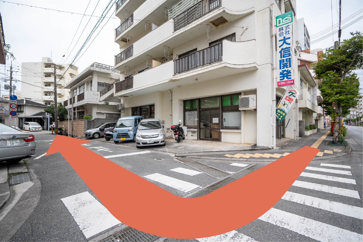 1つ目の角(大信開発様がある角)を右折