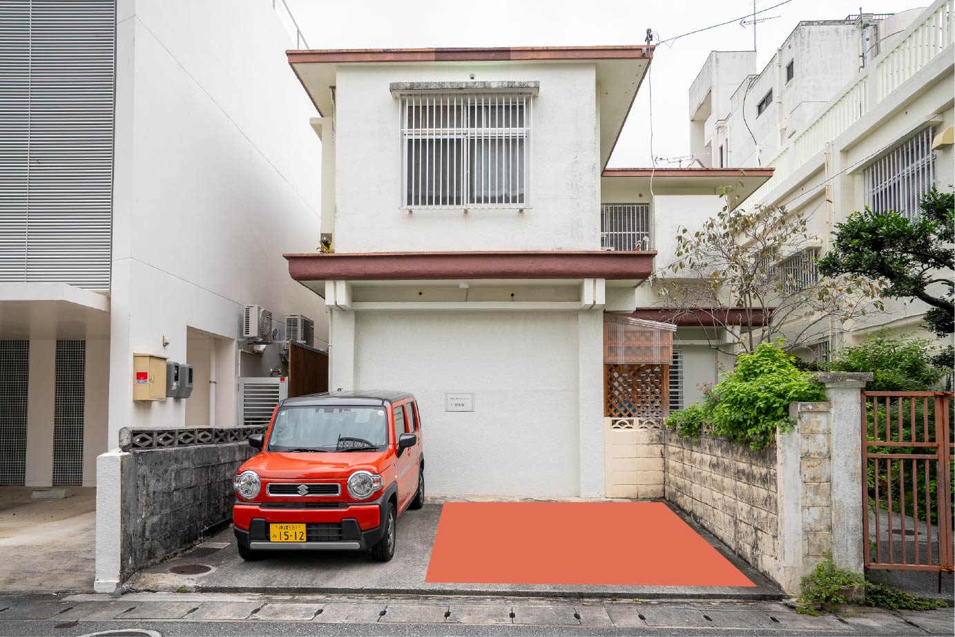 とまと社労士オフィスの張り紙があるエリアが駐車場です。